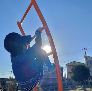 遊具をすいすいと登ったり、初めて使うドッチビーに夢中になったりする
